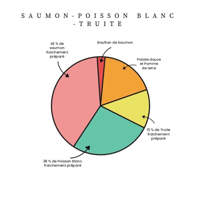 🐟 Composition Premium : 42 % saumon, 28 % poisson blanc, 10 % truite