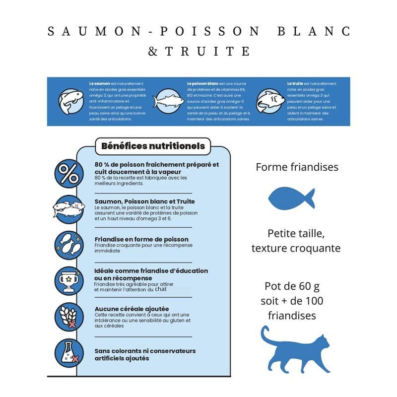 Friandises pour Chat au Poisson – Saumon, Truite & Poisson Blanc – Sans Céréales